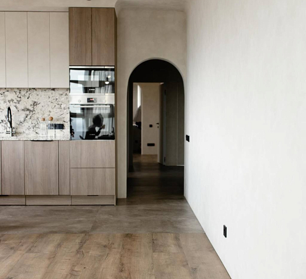 Перед вами — идеальный пример, как правильное напольное покрытие создает атмосферу уюта и гармонии. В этом проекте используется ламинат My Step Мега «Дуб Неаполь» MS2312 — теплый коричневый оттенок, который:
