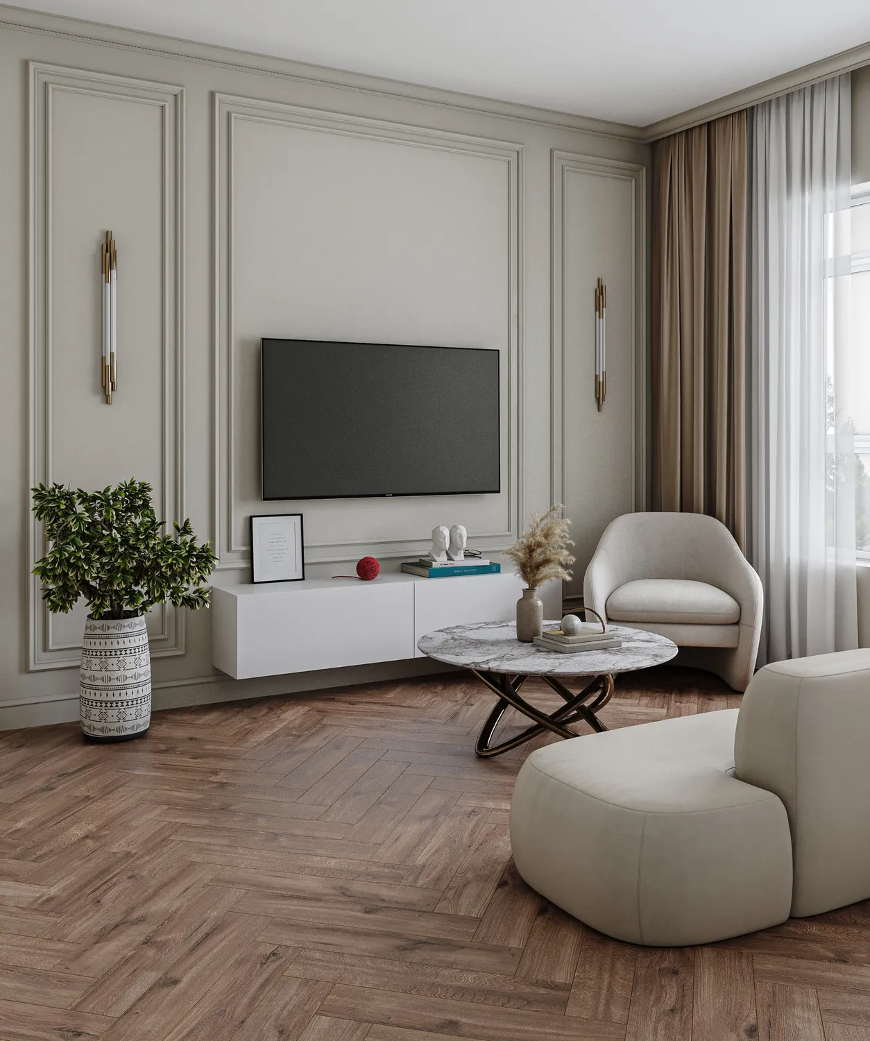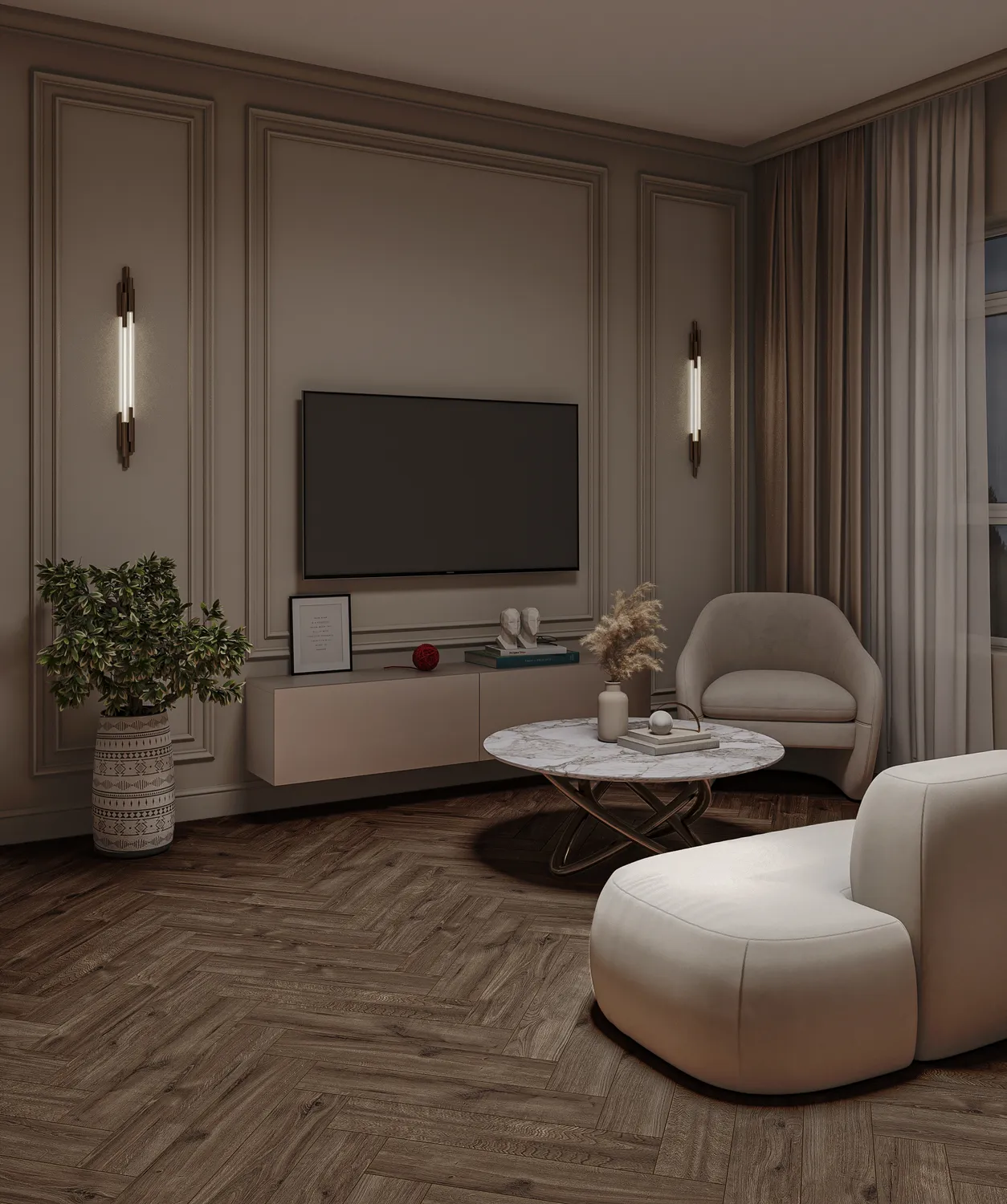 Херрингбон Манор+ — это эталонное качество и дизайн от известного европейского завода Classen, Германия. Визитная карточка коллекции — роскошный декор «английская ёлочка» с безупречной имитацией текстуры натурального дуба. Толщина панелей 10 мм, 32-й класс износостойкости, водостойкость, четырехсторонняя фаска с дополнительной защитой от влаги, антибактериальная и антистатическая обработка, матовая поверхность, современный замок и сертификат экологичности Blaue Engel.