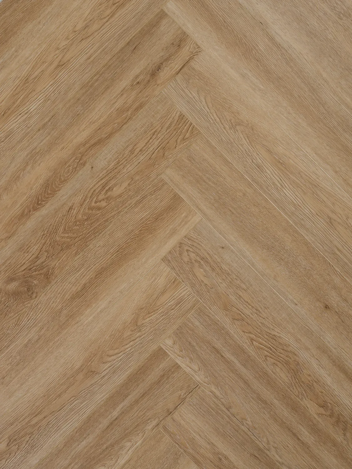 Синхронный рельеф совпадает с рисунком декора — поверхность неотличима от натурального паркета