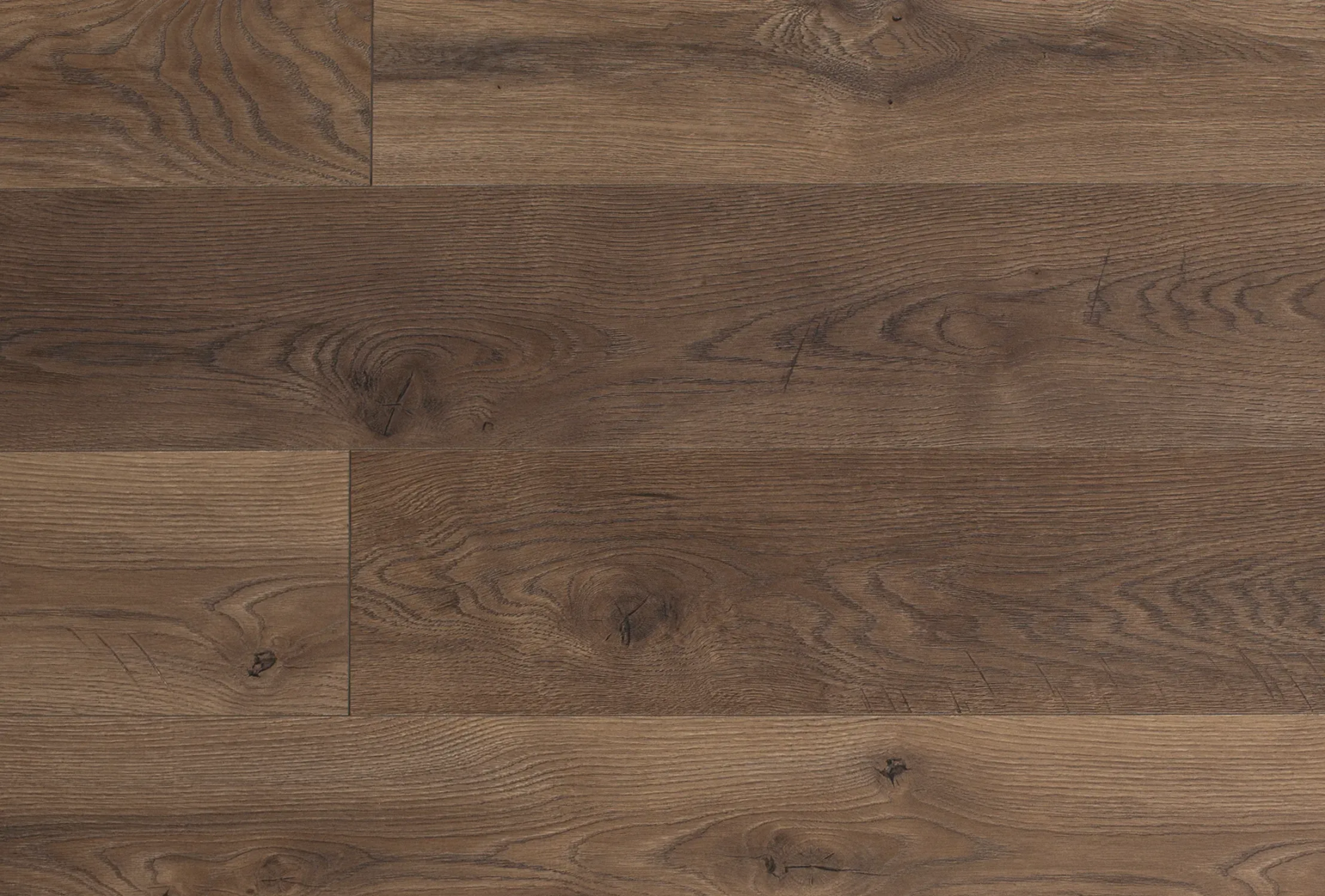 Синхронный рельеф совпадает с рисунком декора — поверхность неотличима от натурального паркета